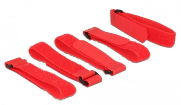 DeLock 18705 - Kabelbinder mit Klettverschluss L 300 mm x B 20 mm Rot - 5 Stk.