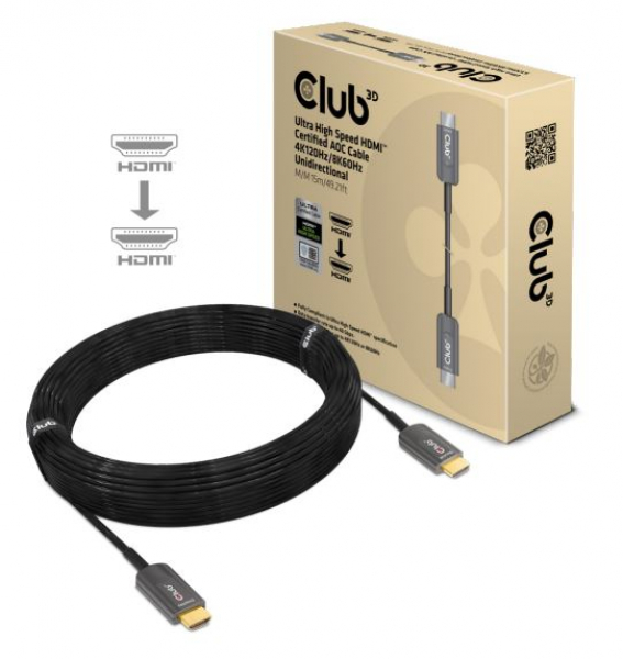 Das zertifizierte, aktive optische Ultra High Speed HDMI Kabel(AOC) Club 3D CAC-1377 ermöglicht Ihnen den Anschluss Ihres bevorzugten Displays über eine Distanz von 15 Metern. Die erweiterte Bandbreite von Ultra High Speed HDMI 2.1 sind 48Gbps. Die Steigerung der maximalen Bandbreite gegenüber früheren Versionen wird erreicht durch Erhöhung der Bitrate der Datenkanäle (von 6Gbps auf 12Gbps) und die Anzahl der Kanäle (von 3 auf 4). Dies ermöglicht Unterstützung für Auflösungen bis zu 4K mit 120Hz oder 8K60Hz! Neu in der Spezifikation ist Display Stream Compression(DSC) 1.2 , dies wird für Videoformate höher als 8K mit 4:2:0 verwendet.