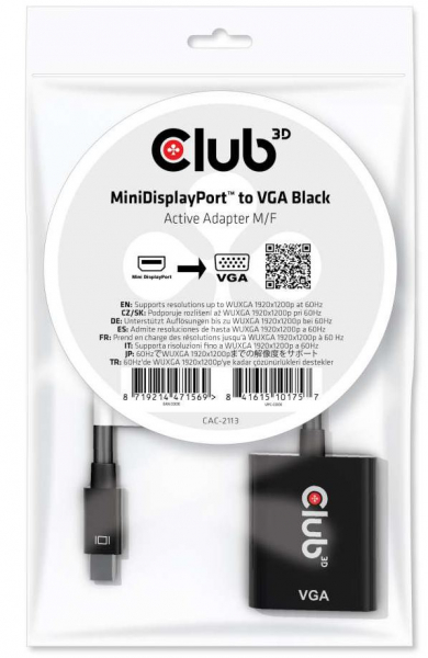 Club3D CAC-2113 - MiniDisplayPort to VGA Black Active Adapter M/F