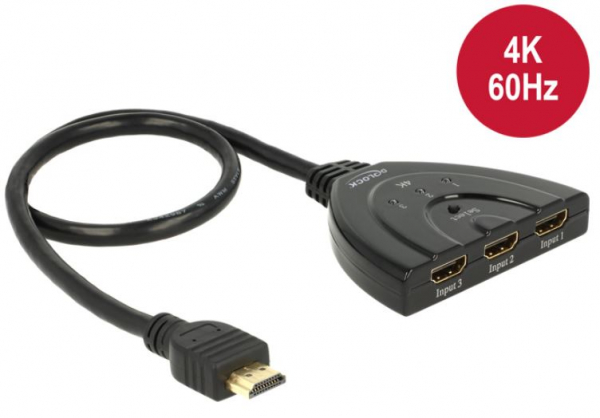 DeLock 18600 - HDMI UHD Switch 3 x HDMI in > 1 x HDMI out 4K mit integriertem Kabel 50 cm