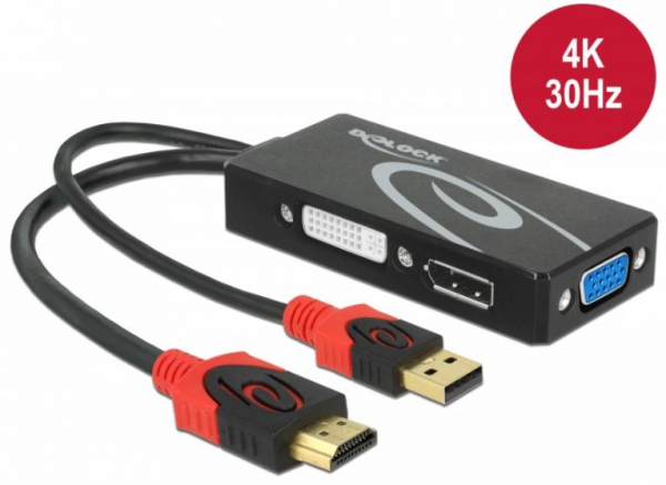 DeLock 62959 - Adapter HDMI Stecker > DVI / VGA / Displayport Buchse 4K schwarz