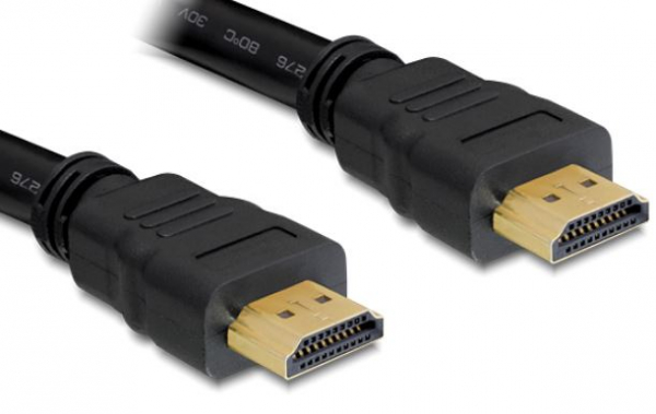 Dieses schwarze High Speed HDMI mit Ethernet Kabel von Delock entspricht dem neuesten HDMI Standard und vereint schnelle Datenübertragung mit Audio-/ Video- und Ethernetverbindung. Man kann somit z.B. den PC oder ein DVD/Blu-ray Laufwerk an einen Monitor oder TV anschließen. Der HDMI-A Stecker ist abwärtskompatibel zu seinen Vorgängern und ermöglicht weiterhin den Anschluss der bisherigen Geräte. Der höhere Drahtdurchmesser und die verdrillten Datenleitungen gewährleisten eine zuverlässige Datenübertragung selbst für diese Kabellänge.