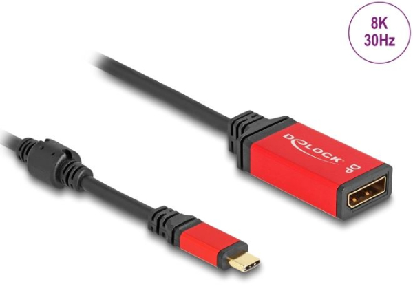 Delock 60052 - USB Type-C zu DisplayPort Adapter (DP Alt Mode) 8K 30 Hz mit HDR Funktion rot - ca. 20cm