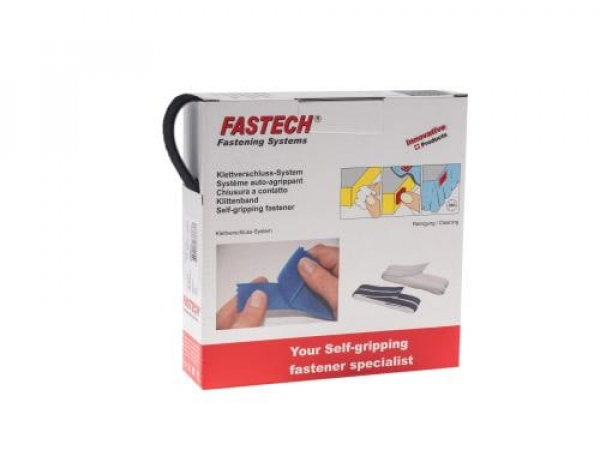 FASTECH Flauschseite Box 25 mm x 10 m selbstklebend, Schwarz / BLACK / Thema: Klettbänder