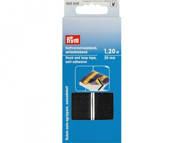 Prym Klettbandverschluss 1.2 m selbstklebend, Schwarz / 20 mm, Karte 1.2 m, selbstklebend / Thema: Klettbänder