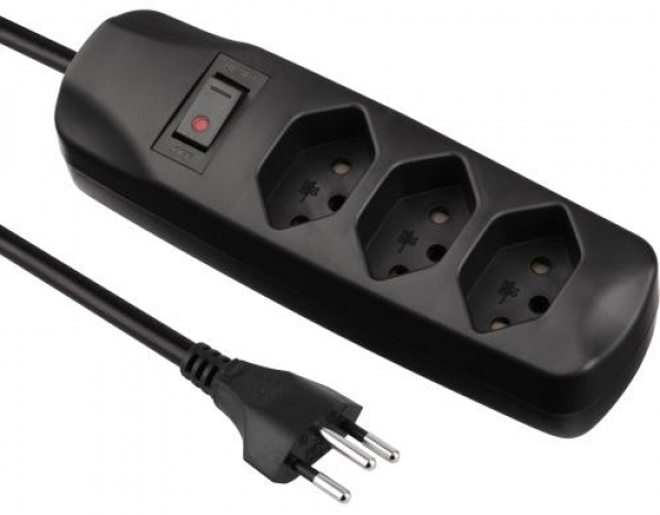 FURBER.power Steckdosenleiste 3x T13 mit Schalter / 230V, schwarz, 1.5m, mit Schalter / Thema: Steckerleisten