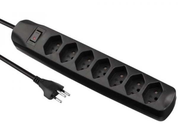 FURBER.power Steckdosenleiste 7x T13 mit Schalter / 230V, schwarz, 1.5m, mit Schalter / Thema: Steckerleisten
