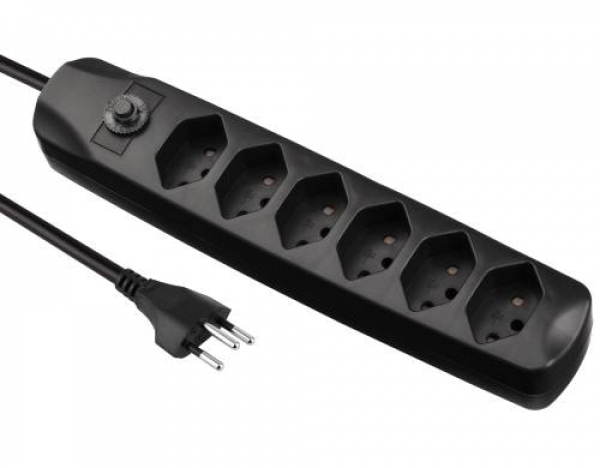 FURBER.power Steckdosenleiste mit Überlastschutz 6x T13 / 230V, schwarz, 1.5m, ohne Schalter / Thema: Steckerleisten