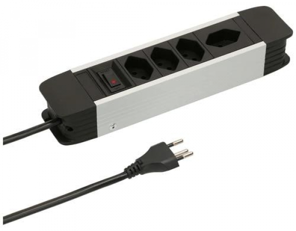 Max Hauri Steckdosenleiste 4 x T13 mit Schalter / 4xT13, mit Schalter, sz/alu, 2m Kabel / Thema: Steckerleisten