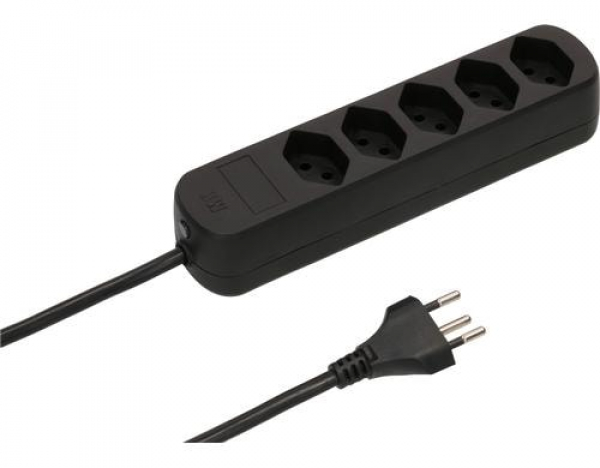 Max Hauri Steckdosenleiste Basic-Line, 5x T13, 5 m, Schwarz / 5xT13, schwarz, 5m Kabel / Thema: Steckerleisten