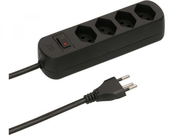 Max Hauri Steckdosenleiste Basic Line 4x T13 Reset Schalter, Schwarz / 4xT13, schwarz, mit Reset-Schalter / Thema: Steckerleisten