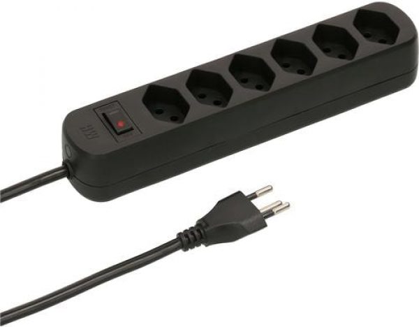 Max Hauri Steckdosenleiste Basic Line 6x T13 Reset Schalter, Schwarz / 6xT13, schwarz, mit Reset-Schalter / Thema: Steckerleisten