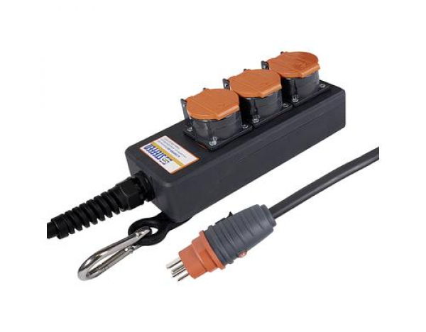 STEFFEN Industrie-Steckerleiste Professional 3x T15 IP55, 3 m / schwarz-orange, IP55, 5x1.5mm, 3m Kabel / Thema: Steckerleisten