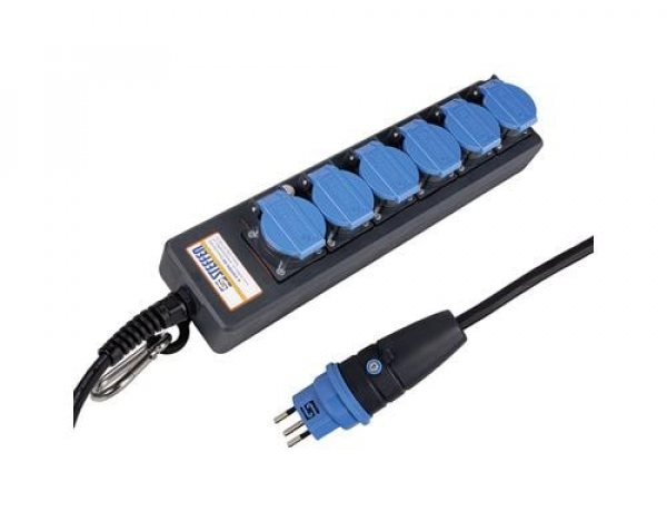 STEFFEN Industrie-Steckerleiste Professional 6x T13 IP55, 5 m / schwarz-blau, IP55, 3x1.5mm, 5m Kabel / Thema: Steckerleisten