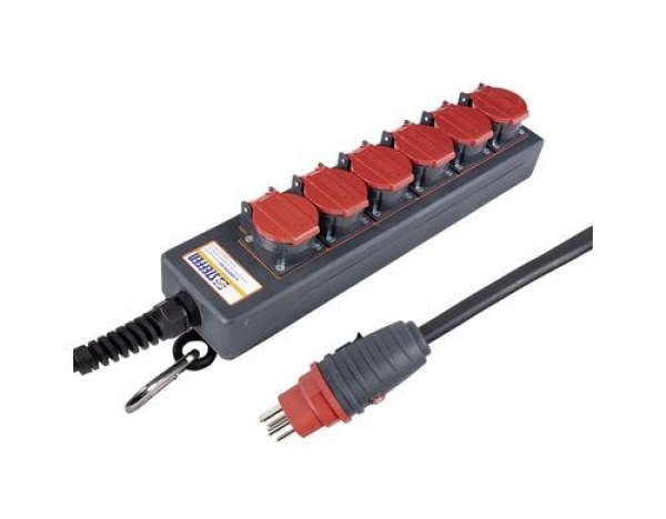 STEFFEN Industrie-Steckerleiste Professional 6x T25 IP55, 5 m / schwarz-rot, IP55, 5x2.5mm, 5m Kabel / Thema: Steckerleisten