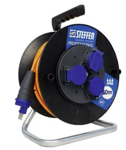 STEFFEN Kabelrolle Professional 30 m 3x T23, IP55, Schwarz