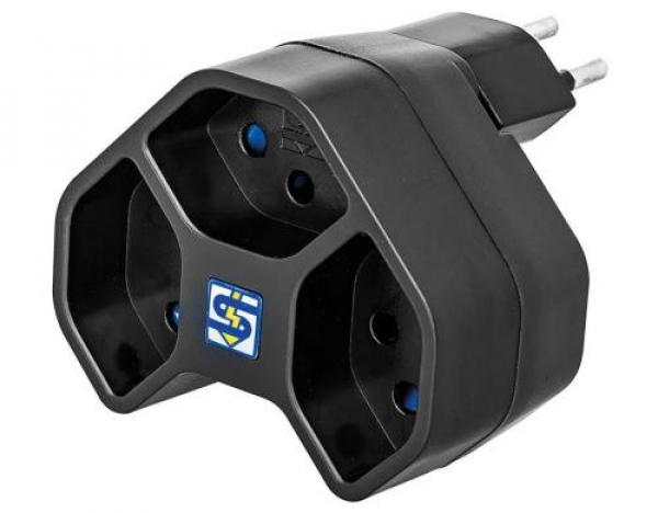 STEFFEN Mehrfachstecker MANTA 3x T13 drehbar 335Grd 3 / schwarz, sternförmig, drehbar, mit KS / Thema: Mehrfach-/Zwischenstecker