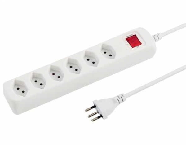 STEFFEN Steckdosenleiste POWER EASY 6x T13 / weiss, mit Schalter, 1.5m Kabel / Thema: Steckerleisten