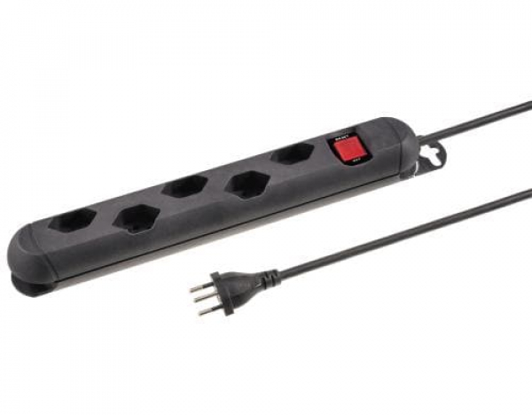 STEFFEN Steckdosenleiste STEBA STRONG 5x T13 / Steckdosen quer, schwarz, 5m Kabel / Thema: Steckerleisten