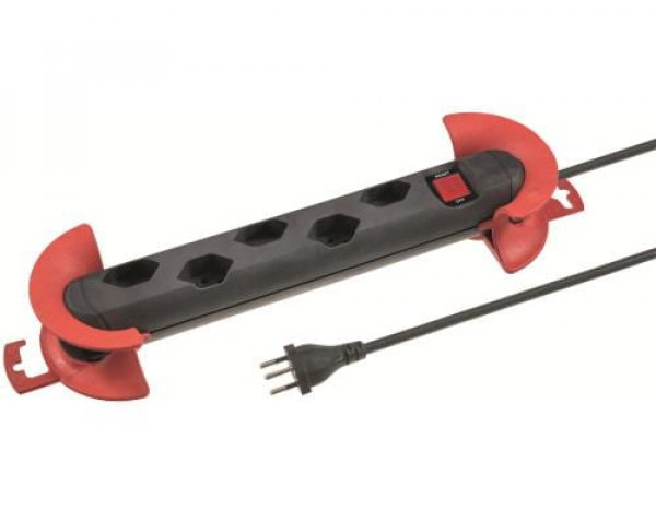 STEFFEN Steckdosenleiste STEBA STRONG 5x T13 / Steckdosen quer, schwarz, 8m Grd-Kabel / Thema: Steckerleisten