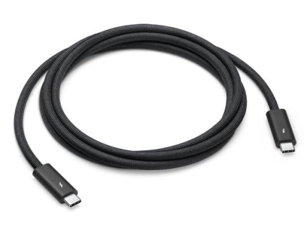 Das 1,8 Meter lange Thunderbolt 4 Pro Kabel MW5J3ZM/A von Apple in schwarzem, geflochtenem Design verheddert sich nicht. Es unterstützt die Datenübertragung via Thunderbolt 3, Thunderbolt 4 und USB 4 mit bis zu 40 Gbit/s, USB 3.1 Gen 2 Datenübertragung mit bis zu 10 Gbit/s, DisplayPort Videoausgabe (HBR3) und schnelles Aufladen mit bis zu 100 Watt. Es eignet sich für Mac-Geräte mit Thunderbolt 3 oder Thunderbolt 4 Anschlüssen mit USB-C Thunderbolt und USB-Geräte wie dem Studio Display, dem Pro Display XDR, Docks und Festplatten. Das Kabel eignet sich auch zum Verbinden des iPhone 15 Pro mit einem Mac.