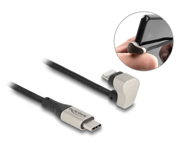 Delock USB 2.0-Kabel 180 Grad gewinkelt USB C - Lightning 1 m / zu Lightning, gewinkelt, 1m, MFi / Thema: USB-Kabel
