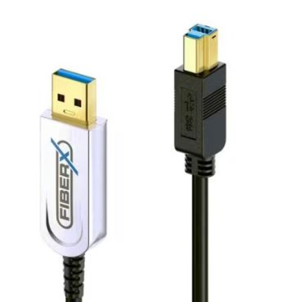 Das FX-I645 ist ein AOC Hybridkabel mit einem Aussendurchmesser von 4.5 mm. Es entspricht der Spezifikation USB 3.1 (Gen2), ist abwärtskompatibel mit USB 2.0 und für Datenübertragungsraten von bis zu 10Gbps geeignet. Das Kabel verfügt über einen USB-A Stecker auf der einen Seite und einen USB-B Stecker auf der anderen Seite, beide mit vergoldeten Präzisions-Steckkontakten. Aufgrund seiner Hybridkonstruktion bietet es eine vollständige Abschirmung gegen elektromagnetische Interferenzen und eine geringe Dämpfung für eine perfekte Übertragungsqualität. Das Kabel benötigt keine externe Stromversorgung, es wird direkt über den USB-Anschluss gespeist.