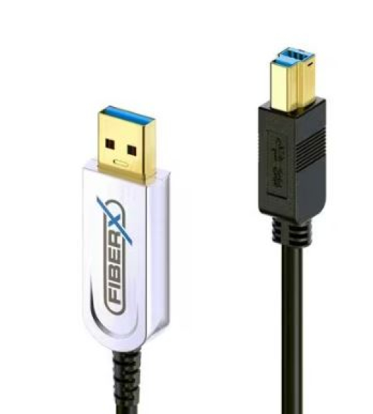 Das FX-I645 ist ein AOC Hybridkabel mit einem Aussendurchmesser von 4.5 mm. Es entspricht der Spezifikation USB 3.1 (Gen2), ist abwärtskompatibel mit USB 2.0 und für Datenübertragungsraten von bis zu 10Gbps geeignet. Das Kabel verfügt über einen USB-A Stecker auf der einen Seite und einen USB-B Stecker auf der anderen Seite, beide mit vergoldeten Präzisions-Steckkontakten. Aufgrund seiner Hybridkonstruktion bietet es eine vollständige Abschirmung gegen elektromagnetische Interferenzen und eine geringe Dämpfung für eine perfekte Übertragungsqualität. Das Kabel benötigt keine externe Stromversorgung, es wird direkt über den USB-Anschluss gespeist.