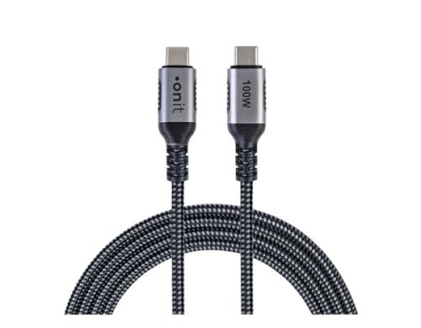 onit USB 3.1-Kabel USB C - USB C 2 m, Grau/Schwarz / USB 3.2Gen2 / 100W / 10Gbps / 4k@60Hz / Thema: USB-Kabel