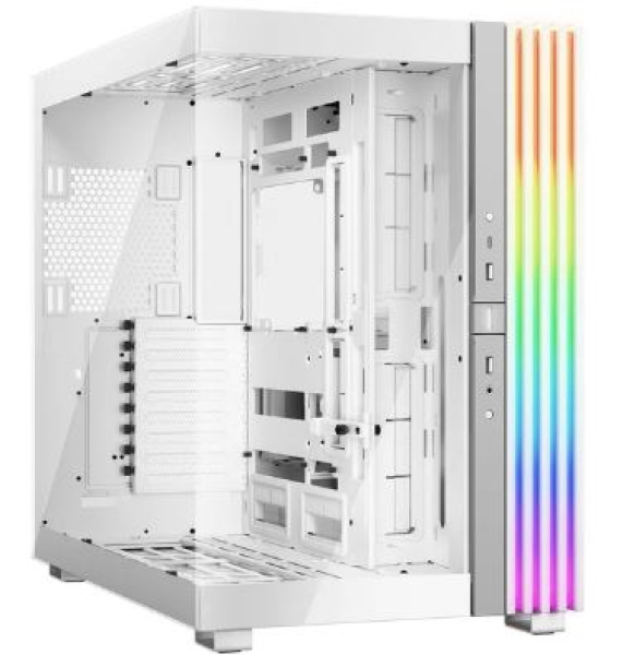 Das Light Base 900 DX ist für den großen Auftritt geschaffen. Nichts beweist das mehr als der massive ARGB LED-Streifen, der aus jedem Winkel sichtbar ist. Der 3m lange Streifen besteht aus 172 LEDs. Durch eine ARGB-Steuerung und der Möglichkeit die Beleuchtung mit dem Mainboard zu synchronisieren, kannst du Light Base 900 DX zu deinem ganz eigenen Gehäuse machen. Mit seinen abnehmbaren Füßen kannst du dieses Gehäuse wortwörtlich in Sekunden invertieren. Du kannst es auch horizontal positionieren, was genauso schnell geht. Das Light Base 900 DX kommt ohne vorinstallierte Lüfter. Du kannst aber bis zu 10 Lüfter installieren. Dank seines extra geräumigen Designs, kann das Gehäuse außerdem bis zu zwei 420mm Radiatoren, ein E-ATX-Mainboard und selbst stärkste Grafikkarten gleichzeitig aufnehmen. Mit seinem 2-Kammer-Designs sind Laufwerke und Kabel geschickt an der Rückseite montiert und ermöglichen starken Airflow. Die abnehmbaren Radiator- und Lüfterhalterungen im Deckel und am Boden vereinfachen die Installation deines Setups extrem. Jede Halterung kann einen Radiator bis zu 420mm aufnehmen. Zudem kannst du einen weiteren 360mm Radiator an der Seite und somit unglaubliche 3 Radiatoren gleichzeitig installieren. Das Gehäuse bietet 2 ARGB und PWM-Hubs mit insgesamt 12 Anschlüssen. Das Light Base 900 DX kommt mit einem flexiblen Grafikkartenhalter der subtil deine Grafikkarte am Absinken hindert. Das Beste daran: Der Grafikkartenhalter funktioniert in alle Richtungen, sowohl mit horizontal als auch vertikal installierten GPUs. Somit sieht dein System selbst mit schwerster Hardware aufgeräumt aus.