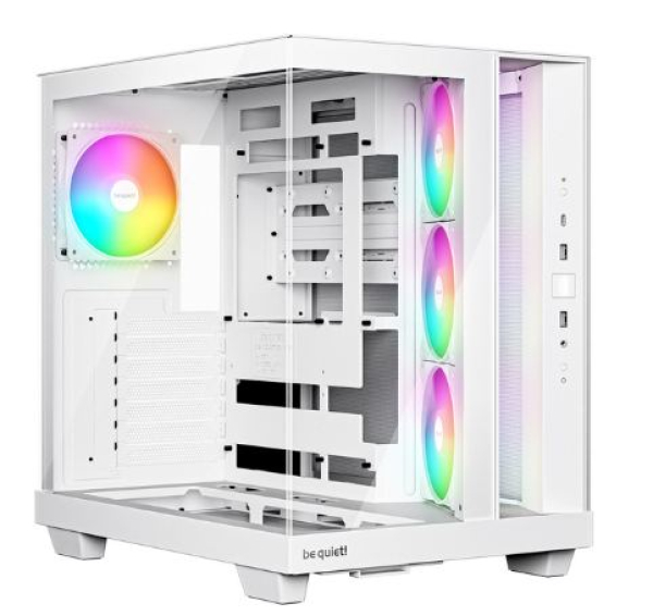 Das Light Base 500 LX steht für klares Design und die Kernwerte eines jeden Gaming-Setups: Leistung, einfache Zugänglichkeit und Funktionalität. Der angewinkelte Lüfterrahmen an der Seite dieses schicken Gehäuses mit Glas an der Seite und der Front ist nicht nur elegant, sondern leitet auch mehr Luft zur GPU. Das Gehäuse hat daher eine dreieckige Aussparung, die als effizienter Lufteinlass dient. Für eine einfache Installation von Lüftern lässt sich der Rahmen zusätzlich nach oben herausziehen. Das Kabelmanagement ist dank eines geräumigen Kanals besonders einfach. Werden zusätzliche Lüfter im unteren Bereich installiert, passen diese dank eines abgesenkten Lüfterfachs perfekt in den Gehäuseboden. Das Light Base 500 LX kommt bereits mit vier vorinstallierten Light Wings LX-Lüftern. Der hintere Lüfter ist ein Light Wings LX 120mm PWM, die Lüfter an der Seite sind Light Wings LX 120mm PWM-Lüfter mit umgedrehten Lüfterblättern - so sind die Lüfterblätter mit der effektvollen ARGB-Beleuchtung jederzeit gut sichtbar. Dabei ist die Beleuchtung durch den integrierten 6-Wege-ARGB-Hub mit PWM über die ARGB-Controller-Taste an der Front mit vordefinierten Lichteffekten und Farben steuerbar.