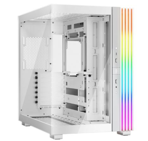 Light Base 600 DX White ist für den großen Auftritt geschaffen. Nichts beweist das mehr als der massive ARGB LED-Streifen, der aus jedem Winkel sichtbar ist. Der 1,33m lange Streifen besteht aus 77 LEDs. Durch eine ARGB-Steuerung und der Möglichkeit die Beleuchtung mit dem Mainboard zu synchronisieren, kannst du Light Base 600 DX White zu deinem ganz eigenen Gehäuse machen. Mit seinen abnehmbaren Füßen kannst du dieses Gehäuse wortwörtlich in Sekunden invertieren. Du kannst es auch horizontal positionieren, was genauso schnell geht. Light Base 600 DX kommt ohne vorinstallierte Lüfter. Du kannst aber bis zu 10 Lüfter installieren. Dank seines geräumigen Designs, kann das Gehäuse außerdem bis zu zwei 360mm Radiatoren, ein ATX-Mainboard und selbst stärkste Grafikkarten gleichzeitig aufnehmen. Durch sein 2-Kammer-Designs sind Laufwerke und Kabel geschickt an der Rückseite montiert und ermöglichen starken Airflow. Neben den Radiatoren im Deckel und Boden kannst du einen weiteren 240mm Radiator an der Seite und somit unglaubliche 3 Radiatoren gleichzeitig installieren. Light Base 600 DX White hat 2 ARGB und PWM-Hubs mit insgesamt 12 Anschlüssen. Ihre Positionen oben und unten im Gehäuse ermöglichen dir einen einfachen Anschluss deiner Hardware. Light Base 600 DX kommt mit einem flexiblen Grafikkartenhalter der subtil deine Grafikkarte am Absinken hindert. Das Beste daran: Der Grafikkartenhalter funktioniert in alle Richtungen, sowohl mit horizontal als auch vertikal installierten GPUs.