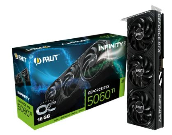 Die Palit GeForce RTX 5060 Ti Infinity 3 OC 16GB ist eine High-End-Grafikkarte mit der GeForce RTX 5060 Ti GPU von NVIDIA. Die leistungsfähigen GeForce RTX 50-Grafikkartenserie basiert auf der NVIDIA Blackwell Architektur und bietet neue Stufen von Gaming Realismus, Geschwindigkeit und Leistungseffizienz, AI Features wie Frame Generation, Multi Frame Generation und realistische VR-Erlebnisse. Weitere Features sind Real-Time Ray Tracing, Ray-Reconstruction, NVIDIA Ansel, mit umfangreichen Werkzeugen zur Erstellung von Screenshots in Spielen sowie NVIDIA G-SYNC, G-SYNC HDR, NVIDIA DLSS 4, ShadowPlay, Highlights, NVENC Gen 9, AV1 Encoder und Decoder. Die auf der Palit GeForce RTX 5060 Ti Infinity 3 OC 16GB verbaute GPU verfügt über 4608 CUDA Cores. Der 16 Gbyte große GDDR7-Speicher verfügt über einen 128-Bit-Speicherkontroller.