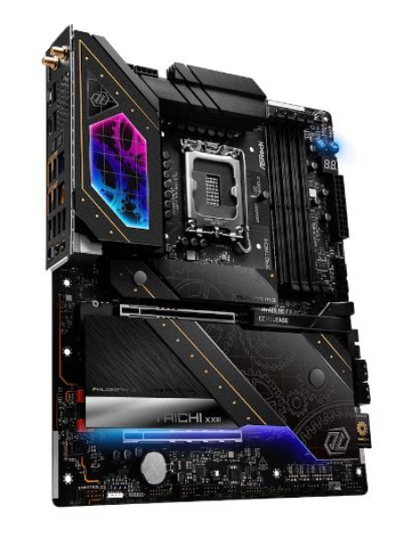 Das ASRock Z890 Taichi basiert auf dem Intel®-Z890-Chipsatz und unterstützt Intel®-Prozessoren für den Sockel 1851. Es verfügt über vier DDR5-Slots für bis zu 256 GB Arbeitsspeicher. Zur weiteren Ausstattung des ASRock Z890 Taichi gehören ein PCIe-5.0-x16-Slot und ein PCIe-4.0-x16-Slot (x4 Lanes). Außerdem verfügt das ASRock Z890 Taichi über 8-Kanal-Sound, eine 5 Gigabit-LAN-Schnittstelle, eine 2.5 Gigabit-LAN-Schnittstelle, WiFi 7, Bluetooth 5.4, vier SATA3-Anschlüsse, sechs M.2-Anschlüsse und eine Reihe an USB Schnittstellen.