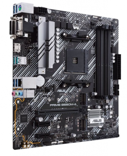 Das ASUS PRIME B550M-A basiert auf dem AMD-B550-Chipsatz und unterstützt AMD-Prozessoren für den Sockel AM4. Es verfügt über vier DDR4-Slots für bis zu 128 GB Arbeitsspeicher. Zur weiteren Ausstattung des ASUS PRIME B550M-A gehören ein PCIe-4.0-x16-Slot, ein PCIe-3.0-x16-Slot und einPCIe-3.0-x1-Slot. Außerdem verfügt das ASUS PRIME B550M-A über 8-Kanal-Sound, eine Gigabit-LAN-Schnittstelle, vier SATA3-Anschlüsse, zwei M.2-Anschlüsse und eine Reihe an USB Schnittstellen.