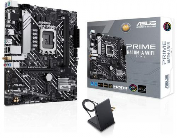 Das ASUS PRIME H610M-A WIFI Mainboard basiert auf dem Intel®-H610-Chipsatz und unterstützt Intel®-Prozessoren für den Sockel 1700. Es verfügt über zwei DDR5-DIMM-Slots im Dual-Channel-Betrieb für bis zu 96 GB Arbeitsspeicher. Zur weiteren Ausstattung des ASUS PRIME H610M-A WIFI gehören ein PCIe-4.0-x16-Slot und ein PCIe-3.0-x1-Slot. Außerdem verfügt das ASUS PRIME H610M-A WIFI über 8-Kanal-Sound, eine Gigabit-LAN-Schnittstelle, vier SATA3-Anschlüsse, zwei M.2-Anschlüsse,Wi-Fi 5, Bluetooth 5.0 und eine Reihe an USB Schnittstellen.