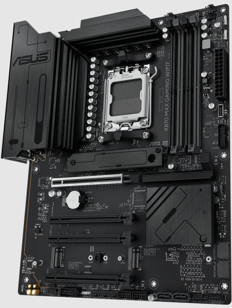 Das ASUS X870 MAX GAMING WIFI7 basiert auf dem AMD-X870-Chipsatz und unterstützt AMD-Prozessoren für den Sockel AM5. Es verfügt über vier DDR5-Slots für bis zu 256 GB Arbeitsspeicher. Zur weiteren Ausstattung des ASUS X870 MAX GAMING WIFI7 gehören ein PCIe-5.0-x16-Slot, zwei PCIe-4.0-x16-Slots (x1 Lanes) und ein PCIe-3.0-x16-Slot (x1 Lanes). Außerdem verfügt das ASUS X870 MAX GAMING WIFI7 über 8-Kanal-Sound, eine 2.5 Gigabit-LAN-Schnittstelle, WiFi 7, Bluetooth 5.4, vier SATA3-Anschlüsse, vier M.2-Anschlüsse und eine Reihe an USB Schnittstellen.