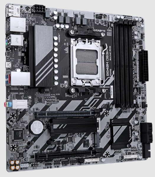 Das GIGABYTE B840M DS3H basiert auf dem AMD B840 Chipsatz und unterstützt AMD-Prozessoren für den Sockel AM5. Es verfügt über vier DDR5-Slots für bis zu 192 GB Arbeitsspeicher. Zur weiteren Ausstattung des GIGABYTE B840M DS3H gehören 1 PCIe-4.0-x16-Slot und ein PCIe 3.0-x16 (x1 Lanes) Slot. Außerdem verfügt das GIGABYTE B840M DS3H über 8-Kanal-Sound, eine 2,5 Gigabit-LAN-Schnittstelle, vier SATA3-Anschlüsse, zwei M.2-Anschlüsse und eine Reihe an USB-Schnittstellen.