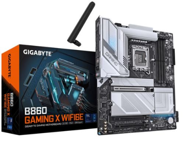 Das GIGABYTE B860 GAMING X WIFI6E basiert auf dem Intel®-B860-Chipsatz und unterstützt Intel®-Prozessoren für den Sockel 1851. Es verfügt über vier DDR5-Slots für bis zu 128 GB Arbeitsspeicher. Zur weiteren Ausstattung des GIGABYTE B860 GAMING X WIFI6E gehören ein PCIe-5.0-x16-Slot und zwei PCIe-4.0-x1-Slots. Außerdem verfügt das GIGABYTE B860 GAMING X WIFI6E über 8-Kanal-Sound, eine 2.5 Gigabit-LAN-Schnittstelle, WiFi 6E, Bluetooth 5.3, vier SATA3-Anschlüsse, drei M.2-Anschlüsse und eine Reihe an USB Schnittstellen.