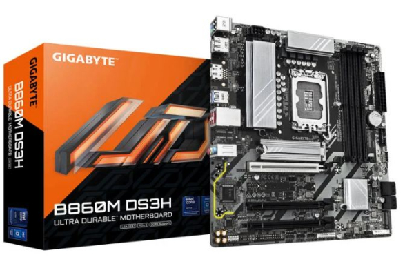 Das GIGABYTE B860M DS3H basiert auf dem Intel®-B860-Chipsatz und unterstützt Intel®-Prozessoren für den Sockel 1851. Es verfügt über vier DDR5-Slots für bis zu 128 GB Arbeitsspeicher. Zur weiteren Ausstattung des GIGABYTE B860M DS3H gehören ein PCIe-5.0-x16-Slot und drei PCIe-4.0-x1-Slots . Außerdem verfügt das GIGABYTE B860M DS3H über 8-Kanal-Sound, eine 2.5 Gigabit-LAN-Schnittstelle, vier SATA3-Anschlüsse, drei M.2-Anschlüsse und eine Reihe an USB Schnittstellen.