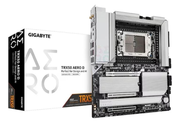 Das GIGABYTE TRX50 AERO D basiert auf dem AMD-TRX50-Chipsatz und unterstützt AMD-Prozessoren für den Sockel AM4. Es verfügt über vier DDR5-Slots für bis zu 1024 GB Arbeitsspeicher. Zur weiteren Ausstattung des GIGABYTE TRX50 AERO D gehören zwei PCIe-5.0-x16-Slots und ein PCIe-4.0-x16-Slot. Außerdem verfügt das GIGABYTE TRX50 AERO D über 8-Kanal-Sound, eine 10 Gigabit-LAN, eine 2.5 Gigabit-LAN-Schnittstelle, acht SATA3-Anschlüsse, vier M.2-Anschlüsse, WiFi 7, Bluetooth 5.3 und eine Reihe an USB Schnittstellen.