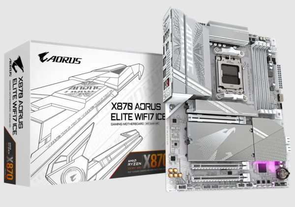 Das GIGABYTE X870 AORUS ELITE WIFI7 ICE basiert auf dem AMD-X870-Chipsatz und unterstützt AMD-Prozessoren für den Sockel AM5. Es verfügt über vier DDR5-Slots für bis zu 256 GB Arbeitsspeicher. Zur weiteren Ausstattung des GIGABYTE X870 AORUS ELITE WIFI7 ICE gehören ein PCIe-5.0-x16-Slot, ein PCIe-4.0-x16-Slot (x4 Lanes) und ein PCIe-3.0-x16-Slot (x2 Lanes). Außerdem verfügt das GIGABYTE X870 AORUS ELITE WIFI7 ICE über 8-Kanal-Sound, eine 2.5 Gigabit-LAN-Schnittstelle, WiFi 7, Bluetooth 5.4, vier SATA3-Anschlüsse, vier M.2-Anschlüsse und eine Reihe an USB Schnittstellen.