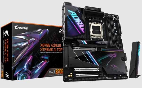 Das GIGABYTE X870E AORUS XTREME AI TOP basiert auf dem AMD-X870E-Chipsatz und unterstützt AMD-Prozessoren für den Sockel AM5. Es verfügt über vier DDR5-Slots für bis zu 256 GB Arbeitsspeicher. Zur weiteren Ausstattung des GIGABYTE X870E AORUS XTREME AI TOP gehören ein PCIe-5.0-x16-Slot, ein PCIe-4.0-x16-Slot (x8 Lanes) und ein PCIe-4.0-x16-Slot (x2 Lanes). Außerdem verfügt das GIGABYTE X870E AORUS XTREME AI TOP über 8-Kanal-Sound, eine 5 Gigabit-LAN-Schnittstelle, WiFi 7, Bluetooth 5.4, vier SATA3-Anschlüsse, vier M.2-Anschlüsse und eine Reihe an USB Schnittstellen.