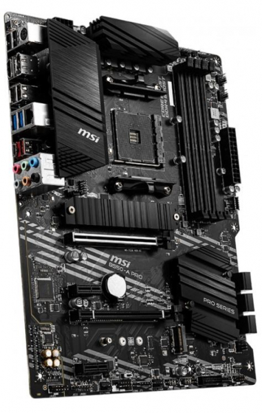 Das MSI B550-A PRO basiert auf dem AMD-B550-Chipsatz und unterstützt AMD-Prozessoren für den Sockel AM4. Es verfügt über vier DDR4-Slots für bis zu 128 GB Arbeitsspeicher. Zur weiteren Ausstattung des MSI B550-A PRO gehören ein PCIe-4.0-x16-Slot, ein PCIe-3.0-x16-Slot und zwei PCIe-3.0-x1-Slots. Außerdem verfügt das MSI B550-A PRO über 8-Kanal-Sound, eine Gigabit-LAN-Schnittstelle, sechs SATA3-Anschlüsse, zwei M.2-Anschlüsse und eine Reihe an USB Schnittstellen.
