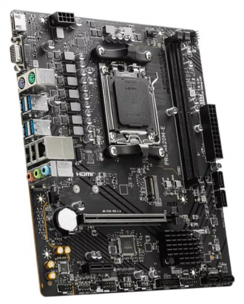 Das MSI PRO A620M-E basiert auf dem AMD-A620-Chipsatz und unterstützt AMD-Prozessoren für den Sockel AM5. Es verfügt über zwei DDR5-Slots für bis zu 96 GB Arbeitsspeicher. Zur weiteren Ausstattung des MSI PRO A620M-E gehören ein PCIe-4.0-x16-Slot und ein PCIe-3.0-x1 Slot. Außerdem verfügt das MSI PRO A620M-E über 8-Kanal-Sound, eine Gigabit-LAN-Schnittstelle, vier SATA3-Anschlüsse, ein M.2-Anschluss und eine Reihe an USB-Schnittstellen.