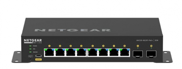 Der Netgear AV Line GSM4210PX ist ein leistungsstarker Switch, speziell entwickelt für professionelle Audio- und Videoanwendungen. Mit seinen zehn Ports, darunter acht PoE+-fähige Ports und zwei SFP-Ports, bietet er flexible Konnektivität für anspruchsvolle AV-Installationen. Der GSM4210PX unterstützt bis zu 480W PoE-Leistung und ermöglicht die nahtlose Integration von AV-Geräten. Vorab konfiguriert für gängige AV-Protokolle wie Dante, Q-SYS und AES67, gewährleistet er eine einfache Einrichtung und zuverlässige Performance. Dank der benutzerfreundlichen AV-GUI und umfassenden Anpassungsoptionen ist der GSM4210PX die ideale Lösung für moderne AV-Umgebungen, die höchste Ansprüche an Qualität und Effizienz stellen.