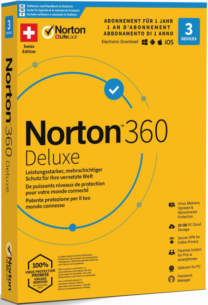 Norton - Security 360 Deluxe 25GB 1 User 3 PC [PC/Mac/Android/iOS] (D/F/I)