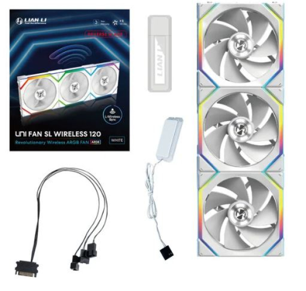 Lian Li UNI FAN SL Wireless ARGB PWM Lüfter - 3er-Pack inkl. Controller - Reverse Blade, 120 mm, Weiss