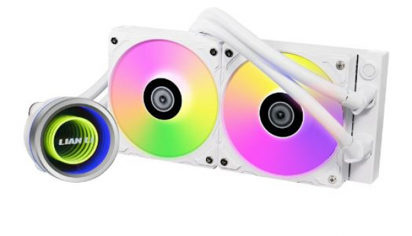 All-In-One-Wasserkühlung in Weiss, 240-mm-Radiator, zwei 120-mm-ARGB-Lüfter, 3 austauschbare Pumpendeckel, Unendlichkeitsspiegel-Effekt, schönes De