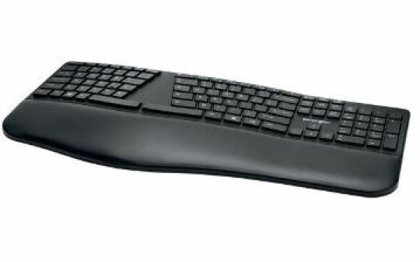 Dank ihres geteilten und schräg abfallenden Designs mit verstellbarer entgegengesetzter Neigung und integrierter Handgelenkauflage bringt die von Ergonomieexperten geprüfte kabellose Pro Fit Ergo-Tastatur von Kensington die Hände in eine äußerst komfortable Arbeitshaltung. Zu den Features zählen die duale kabellose Technologie (2,4 GHz und Bluetooth 4.0 LE) mit AES 128-Bit-Verschlüsselung, die leisen Tastenanschläge sowie die spritzwassergeschützten Tasten. Falls der Receiver verloren geht oder beschädigt wird, kann man einfach einen neuen kaufen, ihn koppeln und schon kann es weiter gehen. Mit dem Stromsparschalter, der über drei Modi verfügt, kann man zwischen 2,4 GHz, Bluetooth und Aus hin und herwechseln, damit die Batterie so lange wie möglich hält.